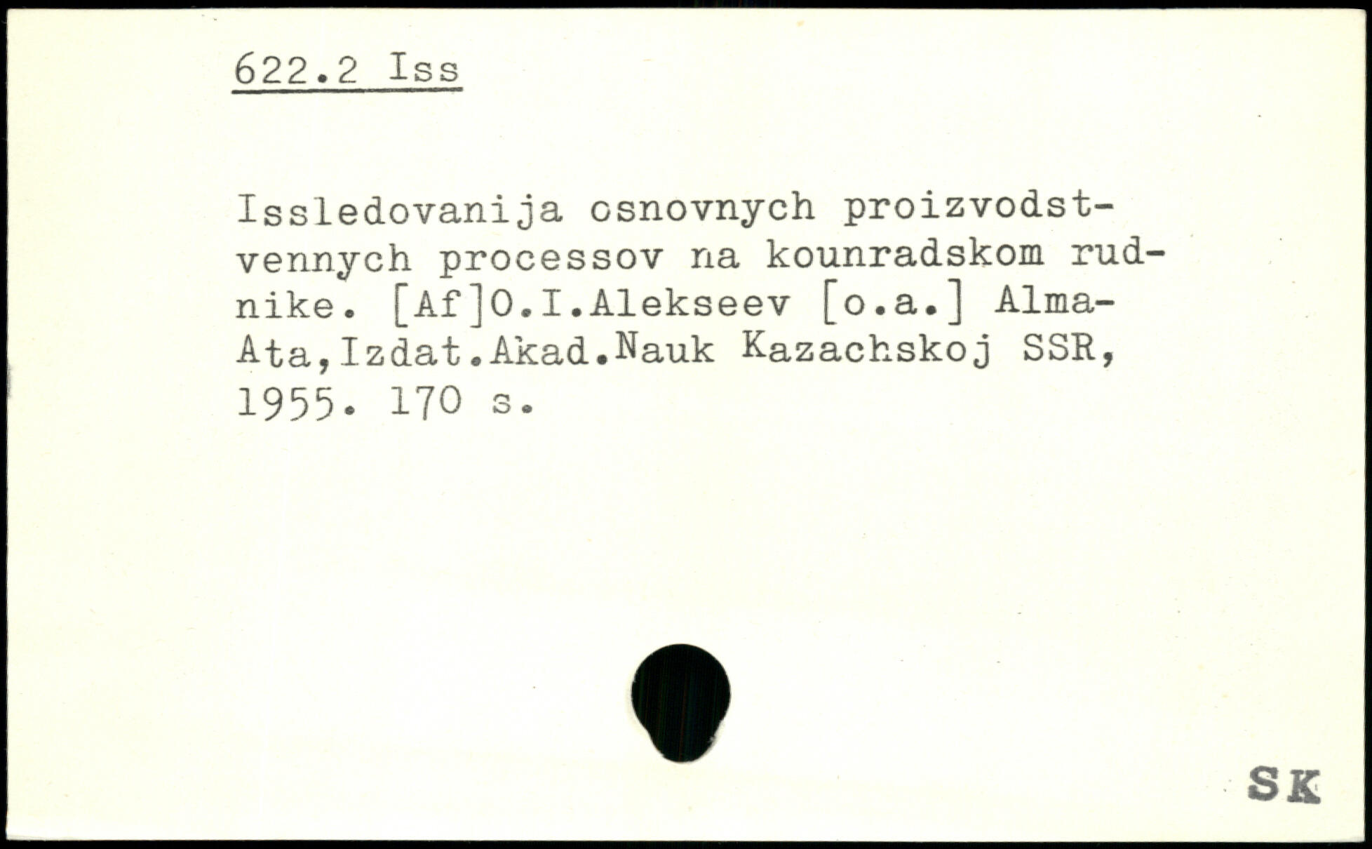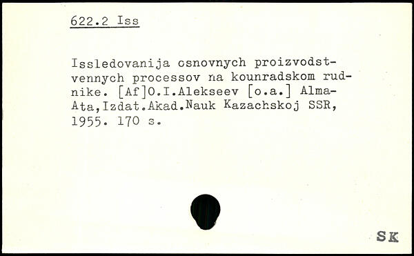 Issledovanija csnovnych proizvodst-vennych processov na kounradskom rud-nike. [Af]0.I.Alekseev [o.a.] Alma-Ata, Izdat.Akad.Nauk Kazachskoj SSE, 1955.