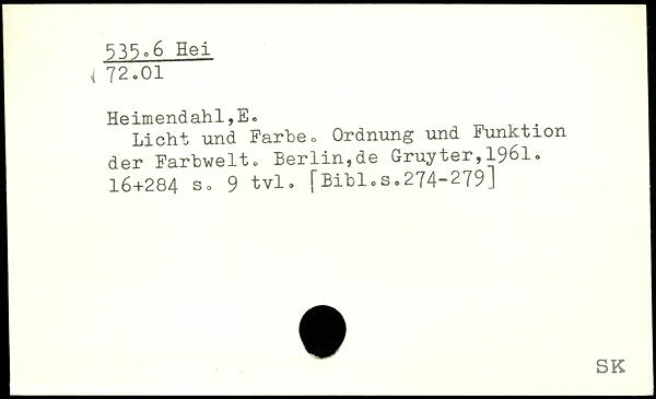Licht und Farbeo Ordnung und Funktion der Farhwelt. Berlin,de Gruyter,1961. j