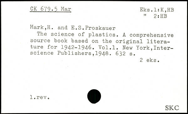 The science of plastics. A comprehensive source book based on the original literature for 1942-1946.