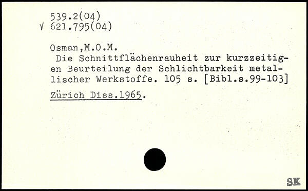 Die Schnittflachenrauheit zur kurzzeitigen Beurteilung der Schlichtbarkeit metallischer Werkstoffe.