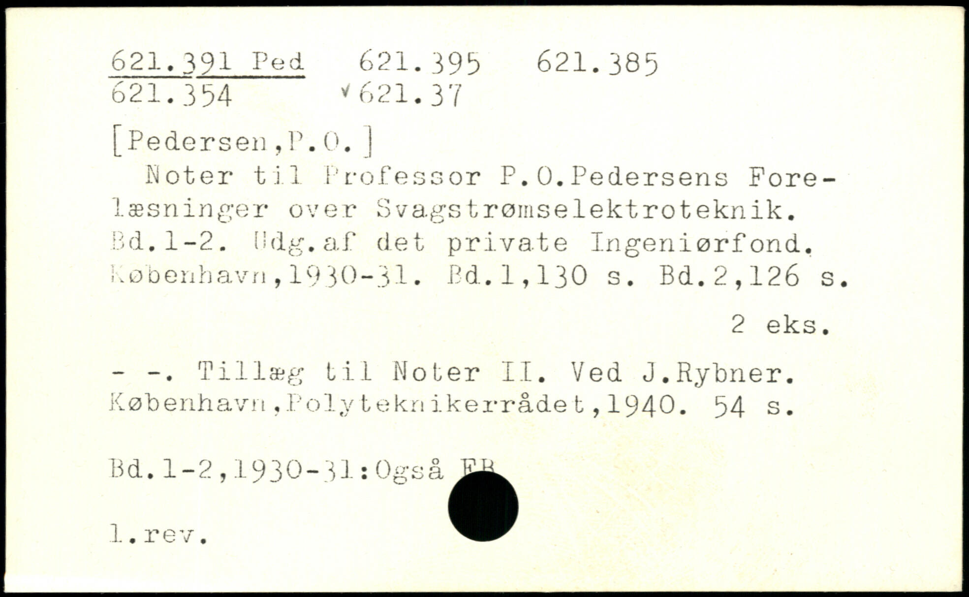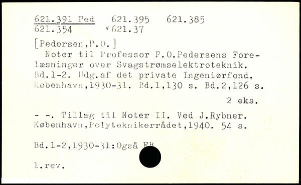 [Pedersen,P.0. j Noter til Professor P.0.Pedersens Forelæsninger over Svagstrømselektroteknik.