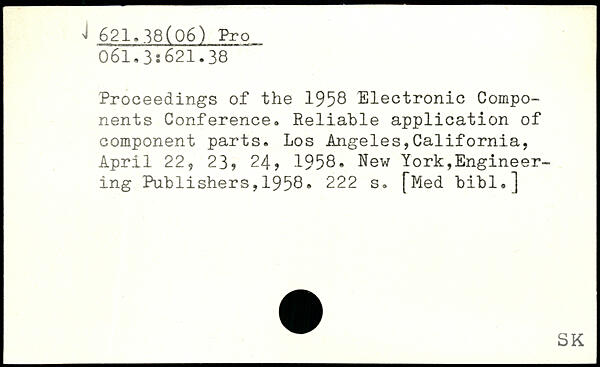 Proceedings of the 1958 Electronic Components Conference. Reliable application of component parts. Los Angeles,California, April 22, 23, 24, 1958.