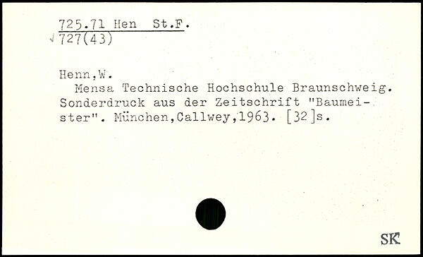Mensa Technische Hochschule Braunschweig. Sonderdruck aus der Zeitschrift "Baumeister".