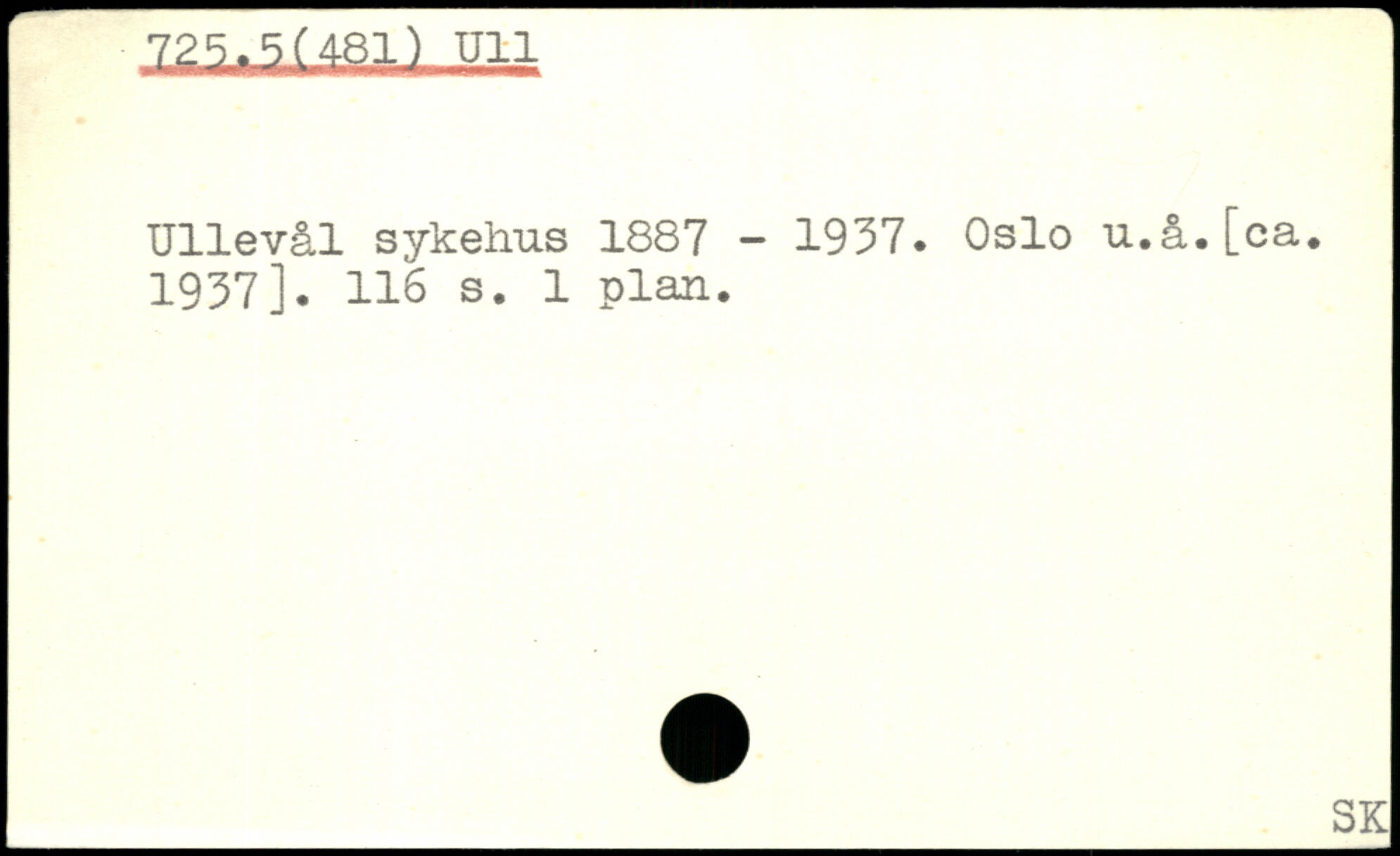 Ullevål sykelius 1887 - 1937. Oslo u.å.[ca. 1937].