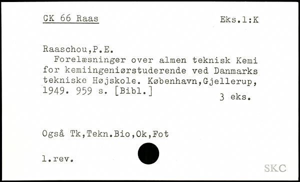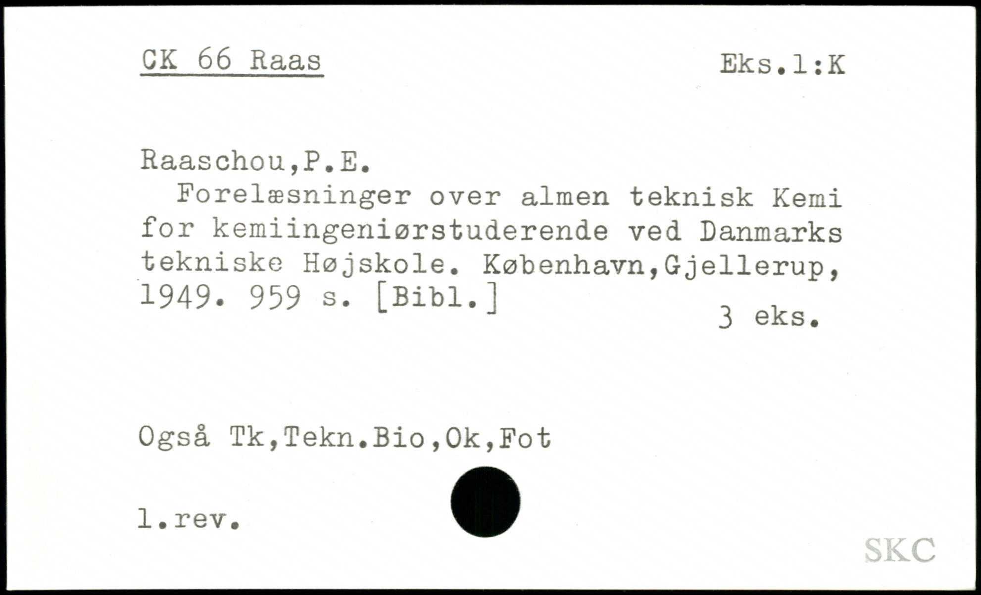 Forelæsninger over almen teknisk Kemi for kemiingeniørstuderende ved Danmarks tekniske Højskole.