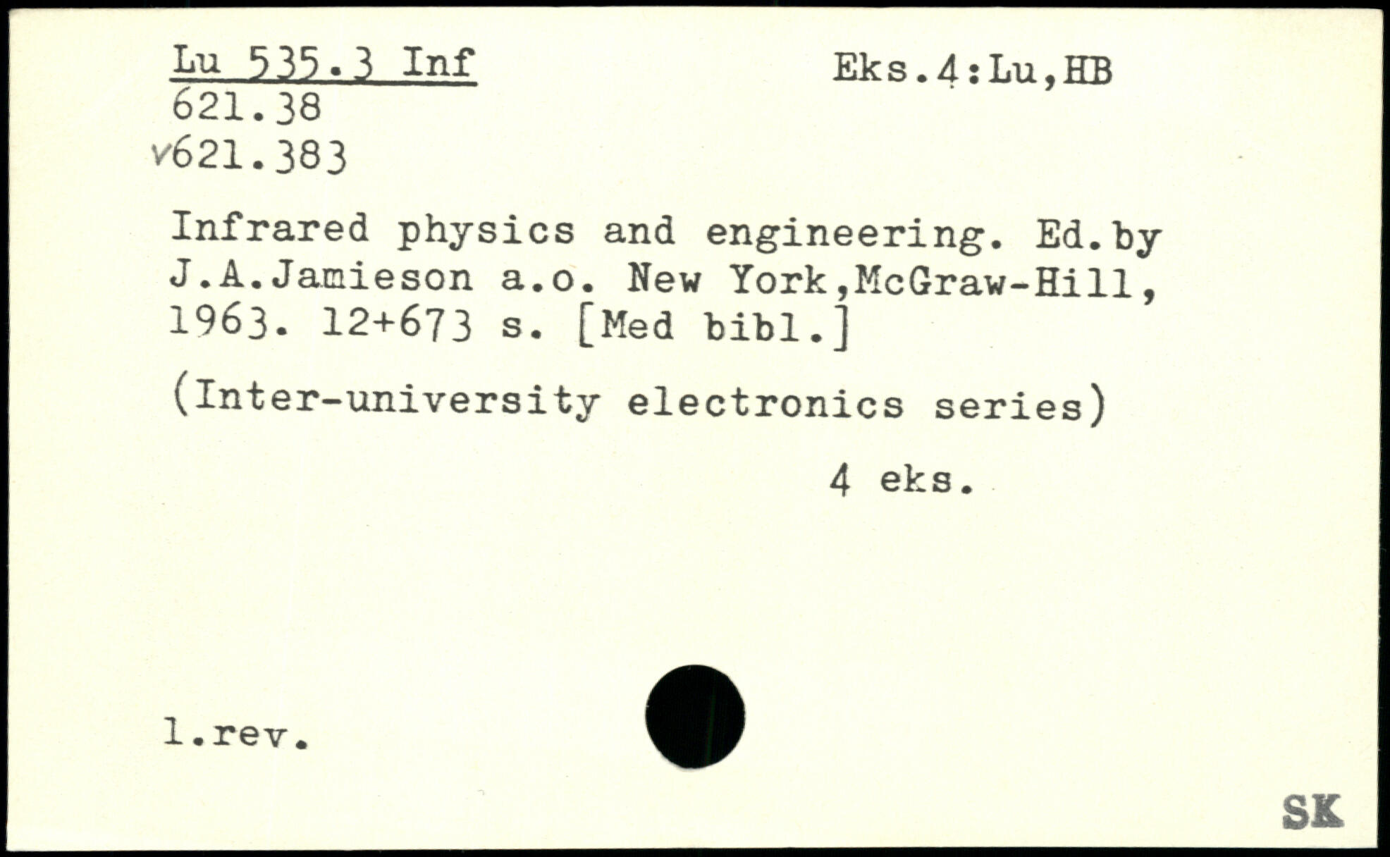 Infrared physics and engineering. Ed. by J.A.Jamieson a.o.