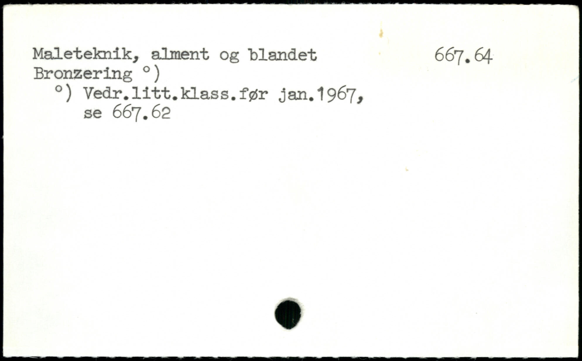 Maleteknik, alment og blandet 667.64. Bronzering .) .) Vedr.litt.klass.før jan.1967, se 667.62