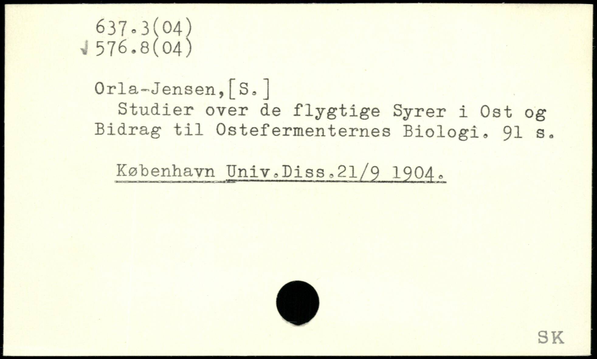Orla-Jensen, [S. ] Studier over de flygtige Syrer i Ost og Bidrag til Ostefermenternes Biologi