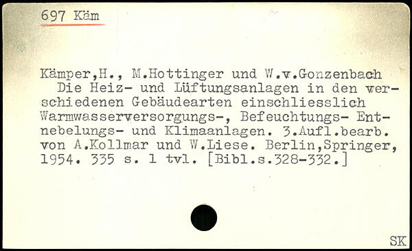 Kämper,H., M.Hottinger und W. v.Gonzenbach Die Heiz- und Lüftungsanlagen in den verschiedenen G-ebäudearten einschliesslich Warmwasserrersorgungs-, Befeuchtungs- Ent-nebelungs- und Klimaanlagen.