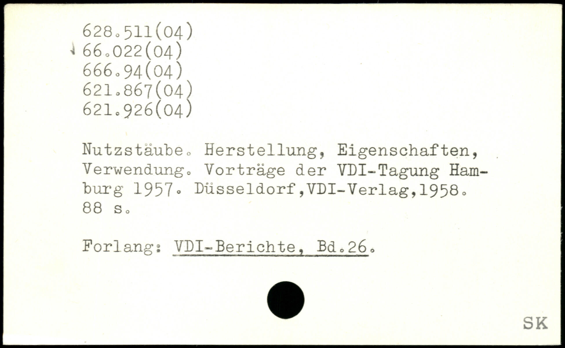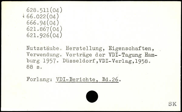 Nutzstaübe, Herstellung, Eigenschaften, Verwendung, Vorträge der VDI-Tagung Ham-burg 1957