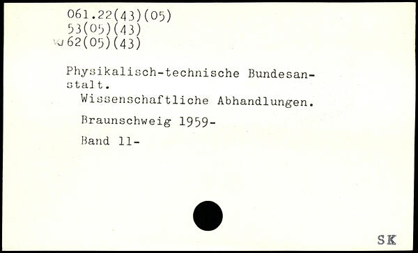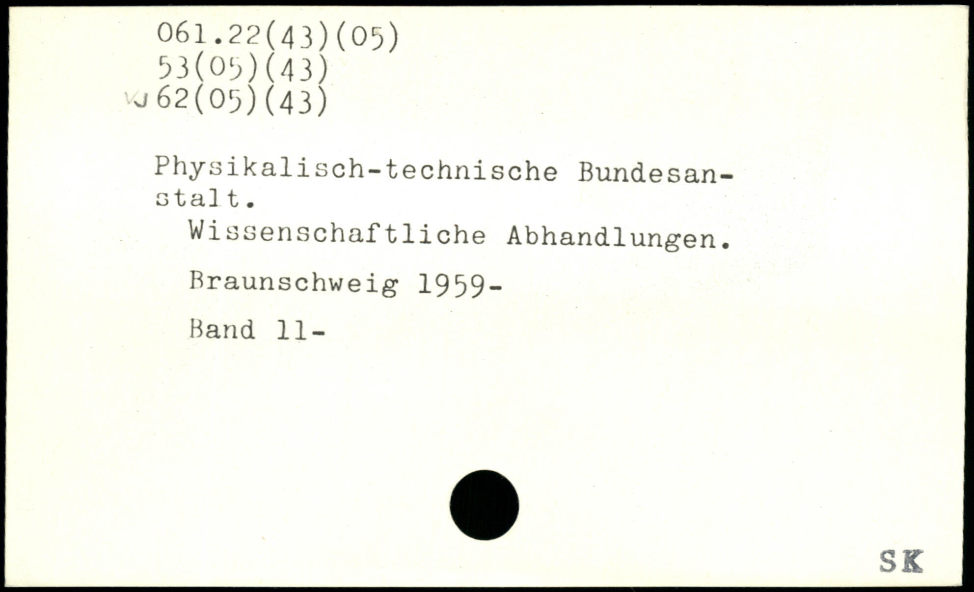 Physikalisch-technische Bundesan- stal t. Wissenschaftliche Abhandlungen. Braunschweig 1959-Band 11-