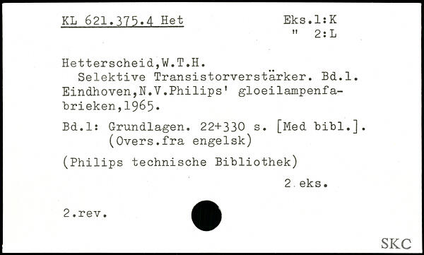 Selektive Transistorverstärker. Bd.l. Eindhoven,N.V.Philips' gloeilampenfa-hrieken,19^5. Bd.l: Grundlagen.