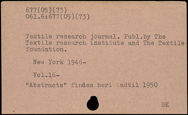 Textile research journal. Puhl.by The Textile research institute and The Textile foundation.