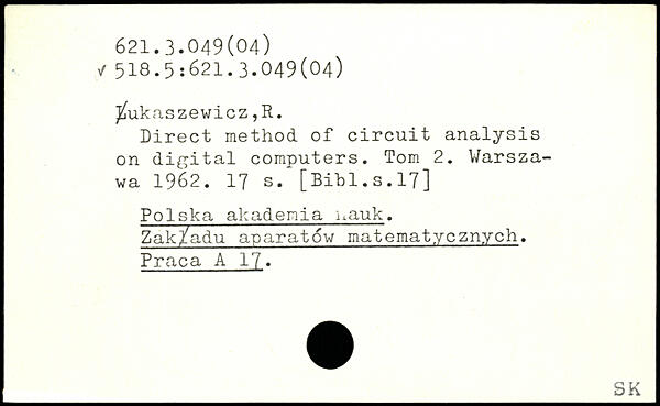 ^ukaszewicz,R. Direct method of circuit analysis on digital computers. Tom 2.