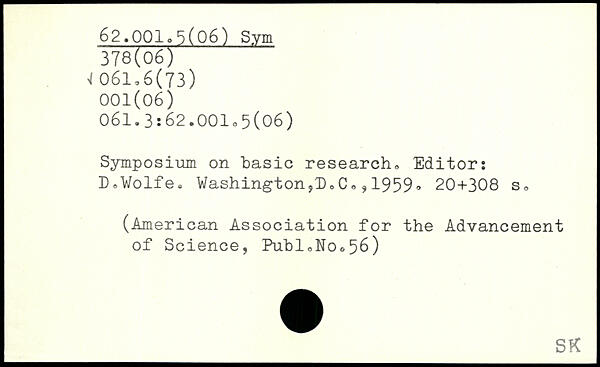 Symposium on basic research. Editor: DaWolfe, Washington,X><,C,,1959.