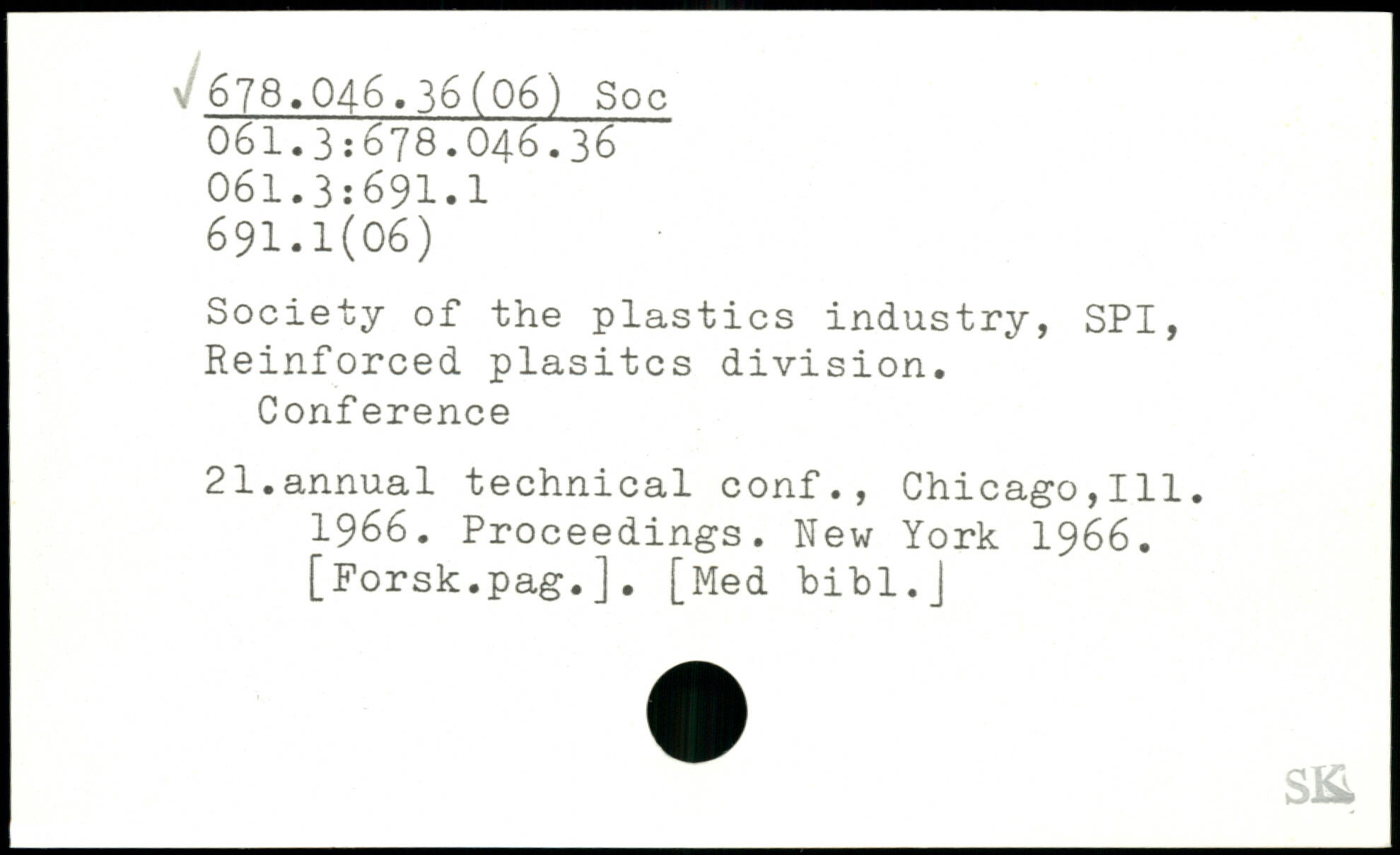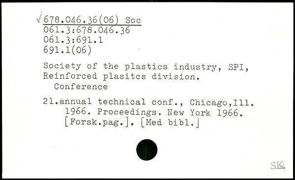 Society of the plastics industry, SPI, Reinforced plasitcs division. Conference 21.annual technical conf., Chicago,111. 1966. Proceedings.
