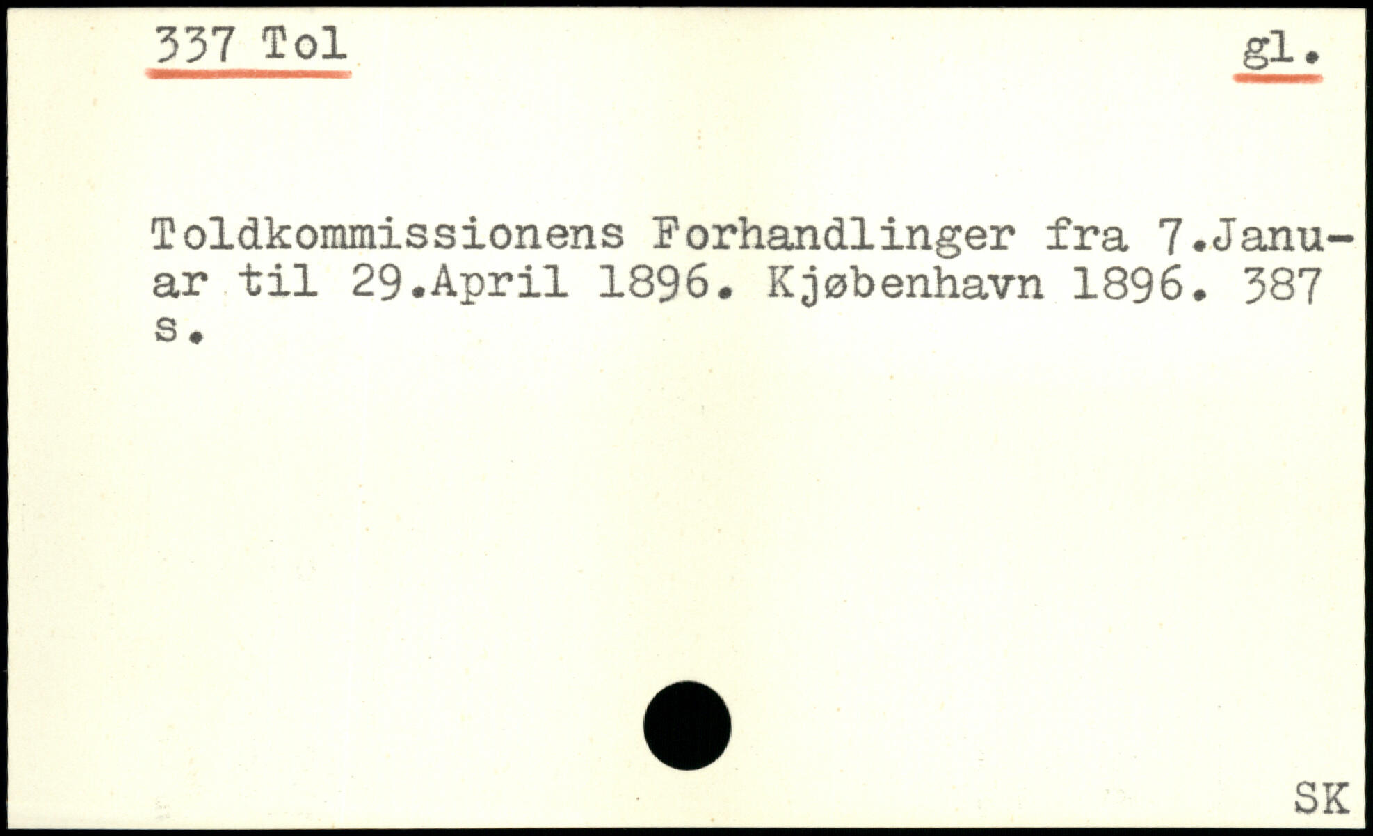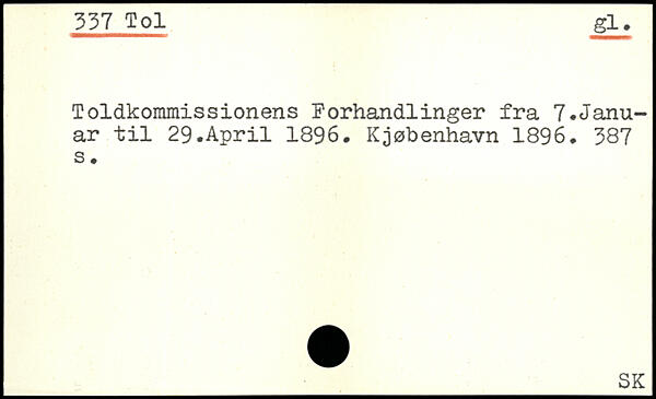 Toldkommissionens Forhandlinger fra 7.Januar til 29.April 1896. Kjøbenhavn 1896.