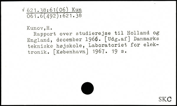 Rapport over studierejse til Holland og England, december 1966. [Udg.af] Danmarks tekniske højskole, Laboratoriet for elektronik.