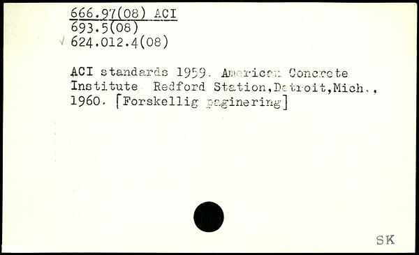 ACI standards 1959- Ar;' ricm Conerete Institute Redford Station,Detroit,Mich,, 1960. [Forskellig paginering]