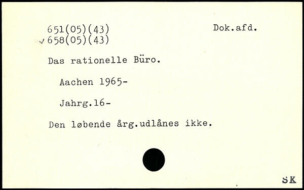 Das rationelle Buro. Aachen 19^5-Jahrg.l6- Den løbende årg.udlånes ikke. 6K
