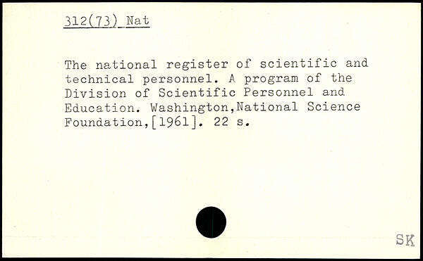 The national register of scientific and technical personnel. A program of the Division of Scientific Personnel and Education.