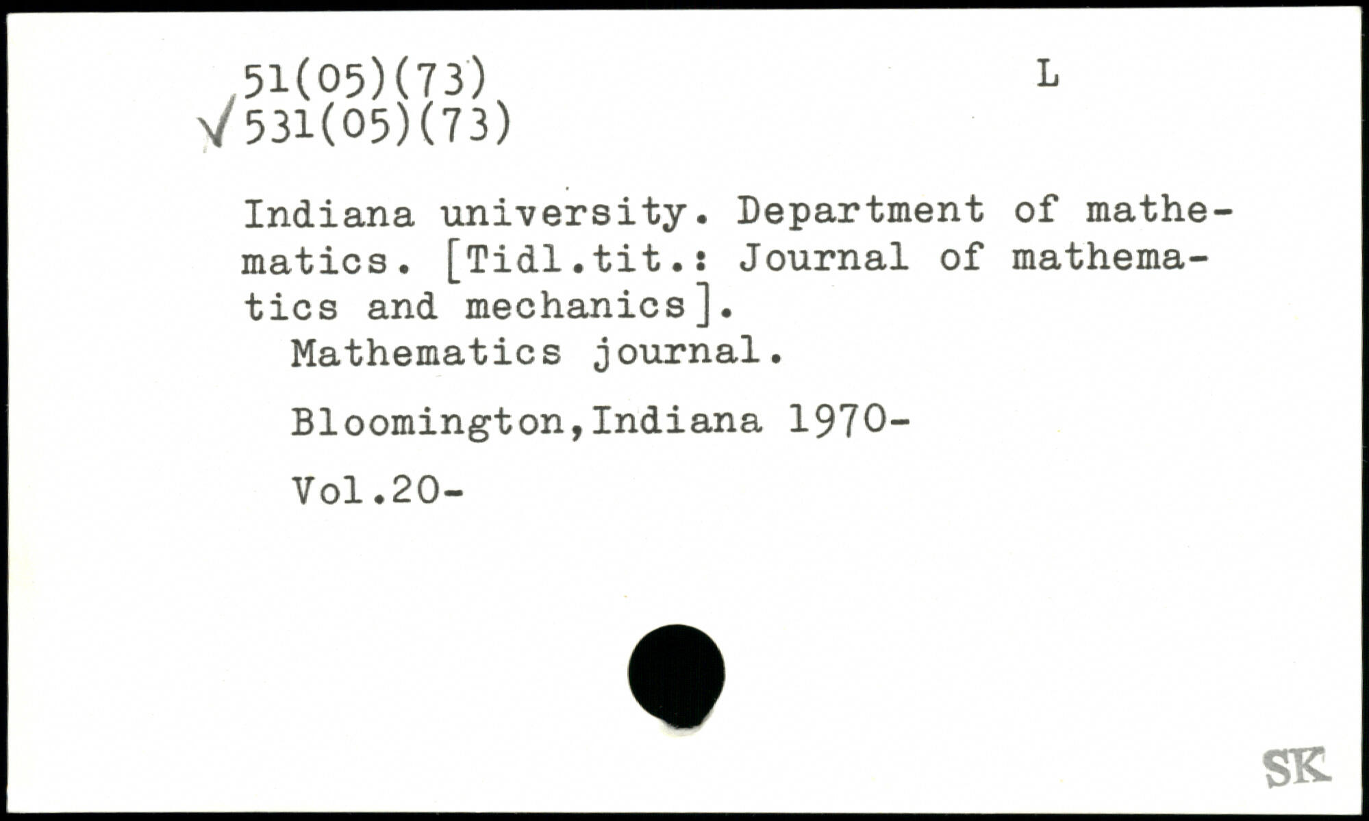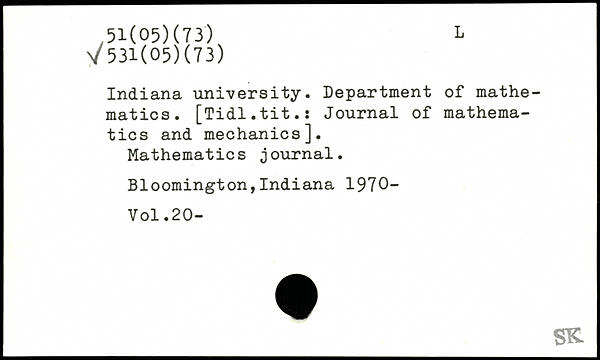 Indiana university. Department of mathematics. [Tidl.tit.s Journal of mathematics and mechanics]. Mathematics journal. Bloomington,Indiana 1970-