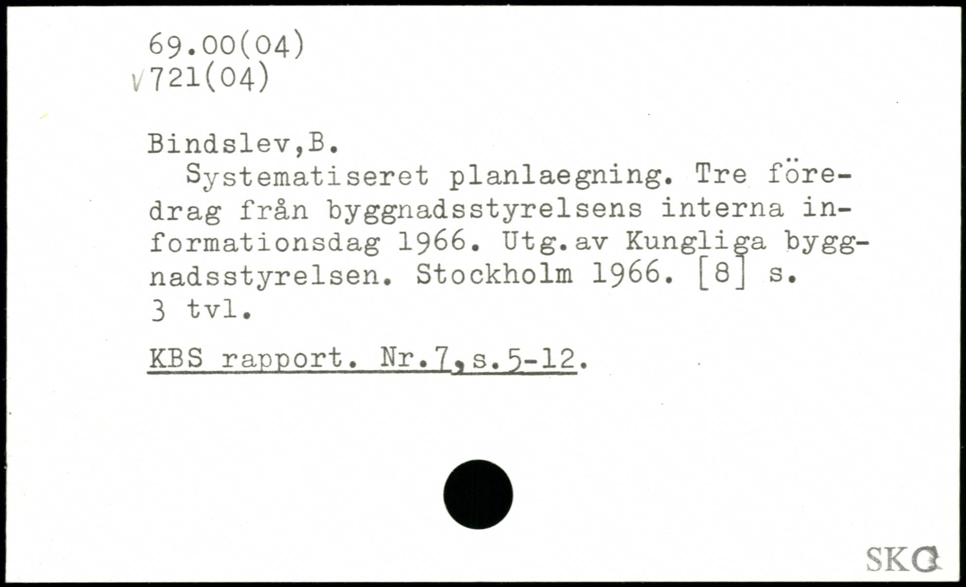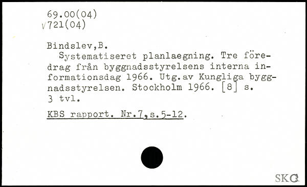 Systematiseret planlaegning. Tre foredrag från byggnadsstyrelsens interna informationsdag 1966. Utg.av Kungliga byggnadsstyrelsen.