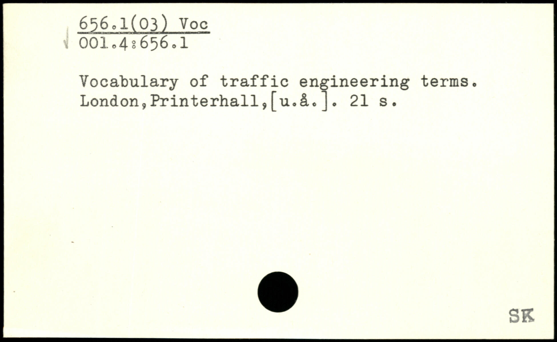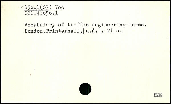 Vocabulary of traffic engineering terms. London,Printerhall,[u.&.].
