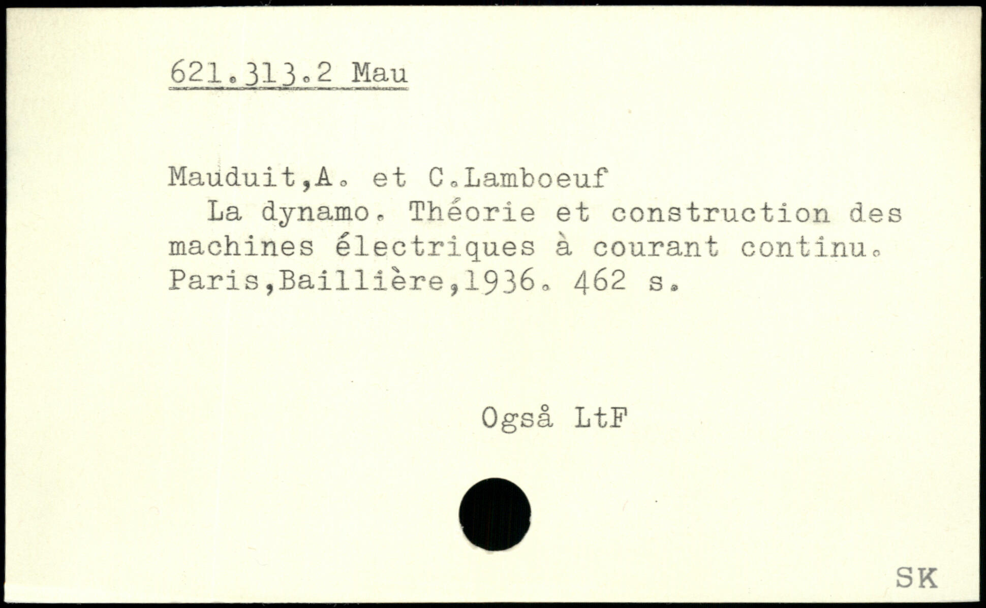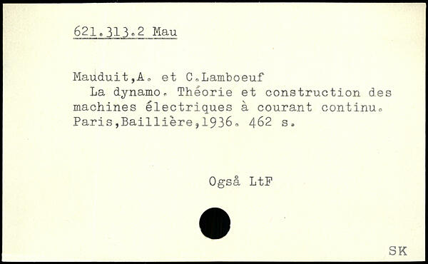 La dynamo , Théorie et construction des machines électriques à courant continu. Paris,Ba1111ère,1936