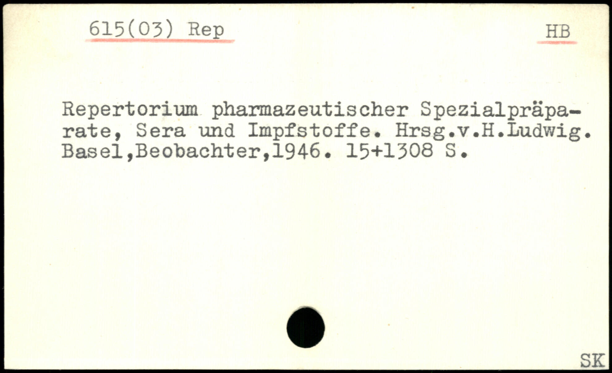 Repertorium pharmazeutischer Spezialpräparate, Sera und Impfstoffe. Hrsg.v.H.Ludwig.