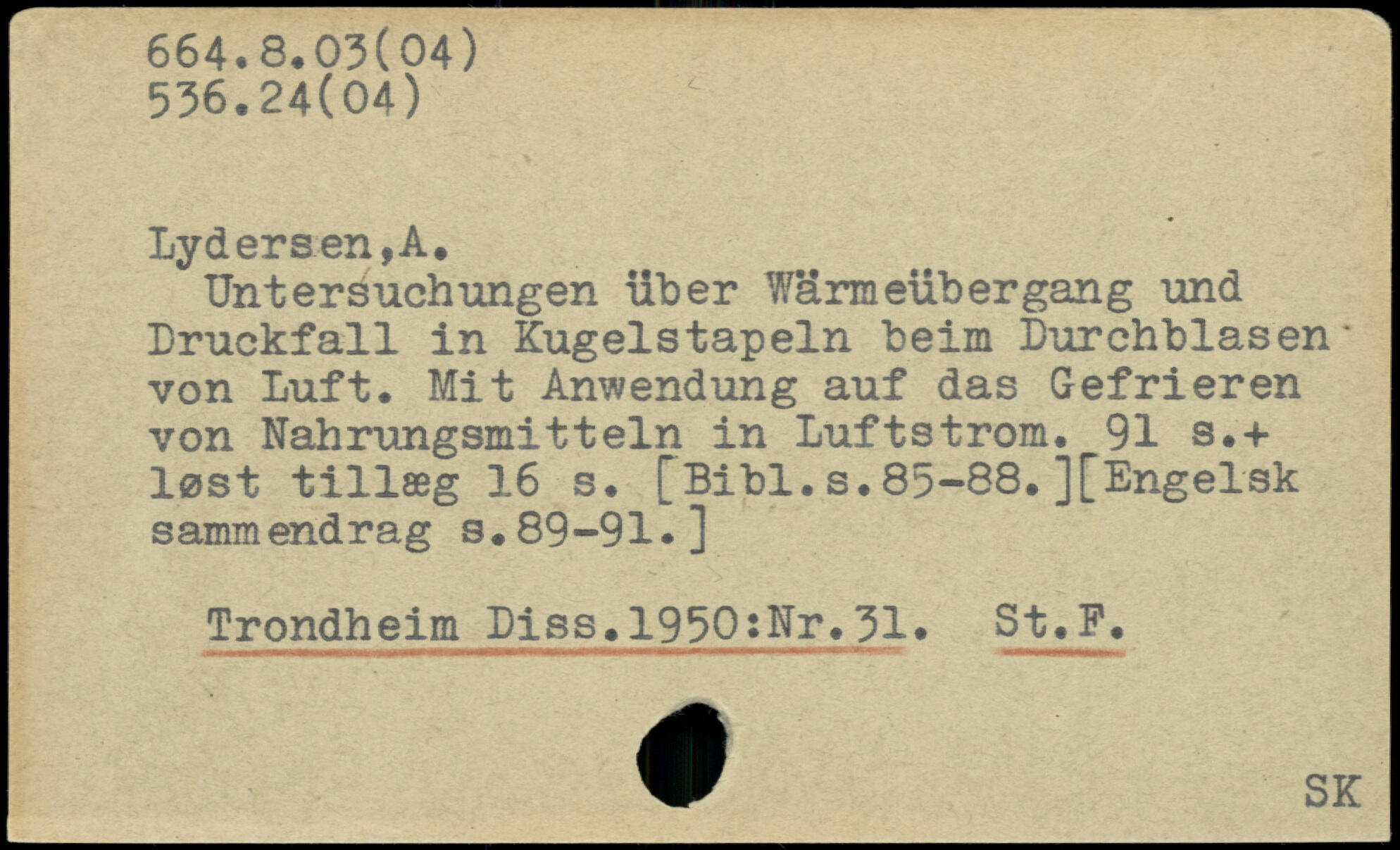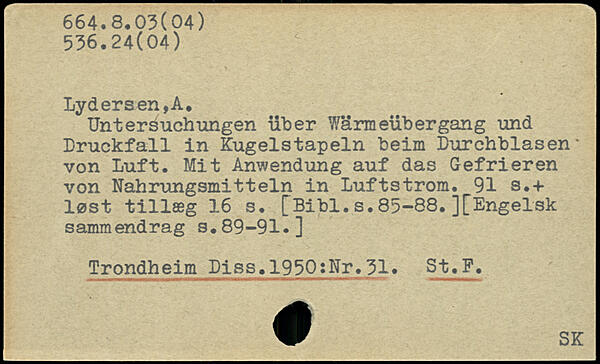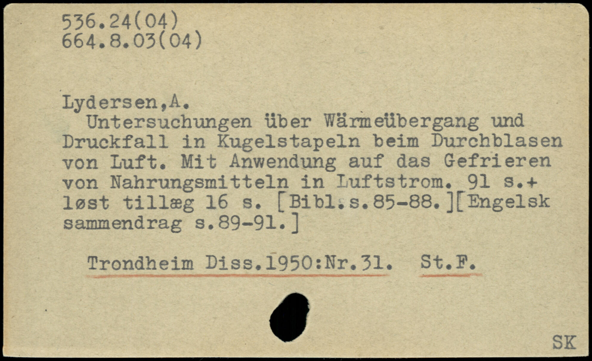 Untersuchungen über Wärmeübergang und Bruckfall in Kugelstapeln beim Durchblasen-von Luft. Mit Anwendung auf das Gefrieren von Nahrungsmitteln in Luftstrom.
