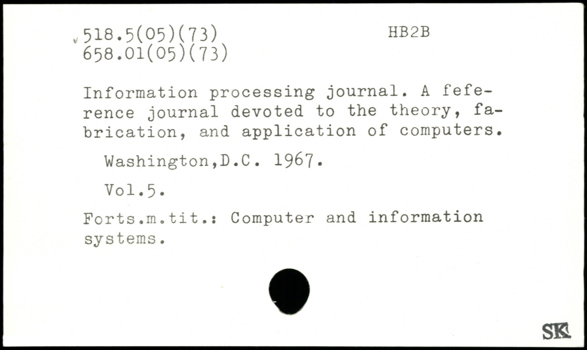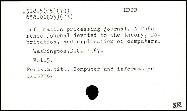 Information processing journal. A reference journal devoted to the theory, fabrication, and application of computers. Washington,D.C. 19^7.