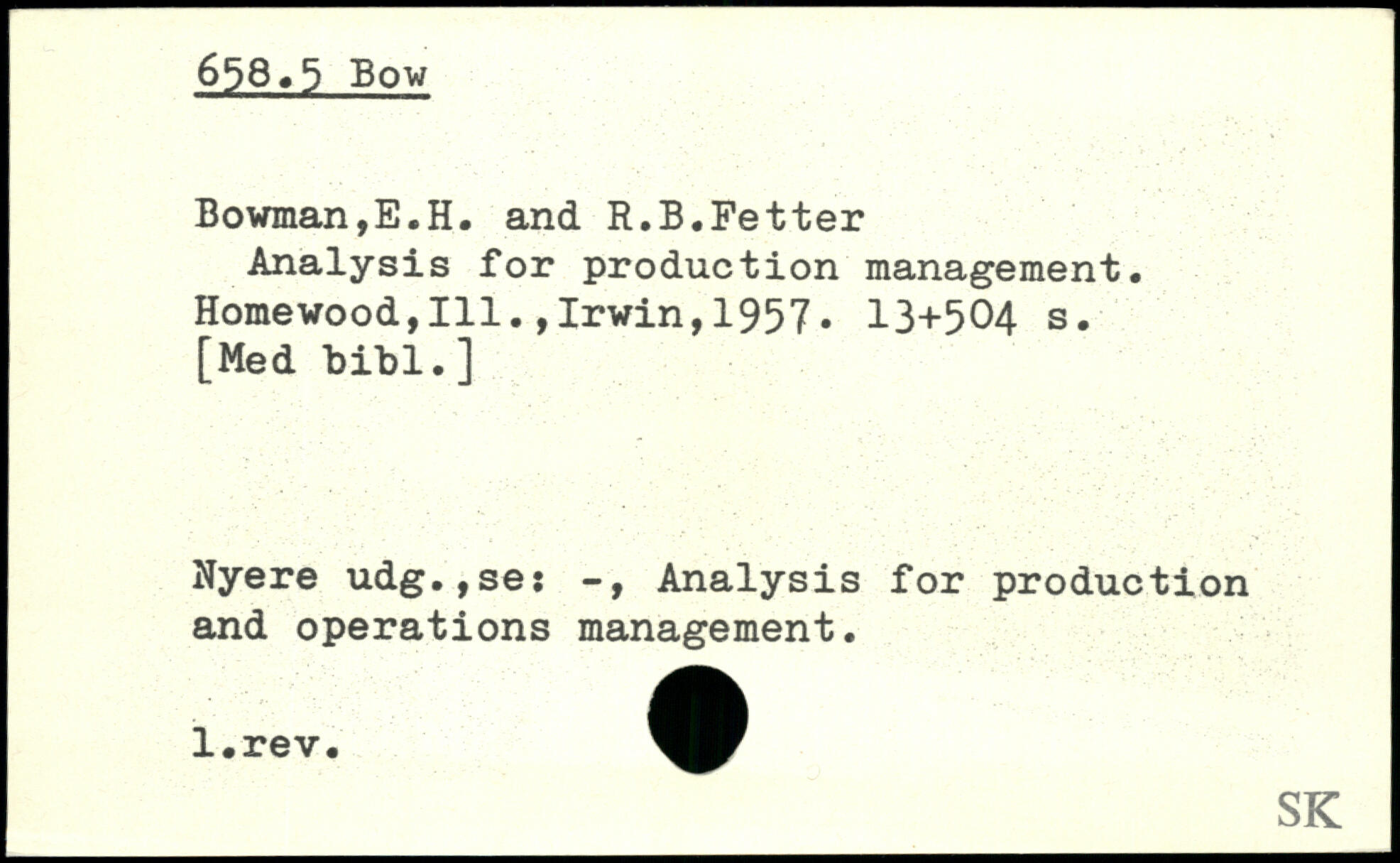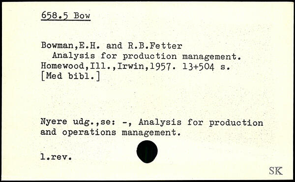 Analysis for production management. Homewood,111.,Irwin,1957.