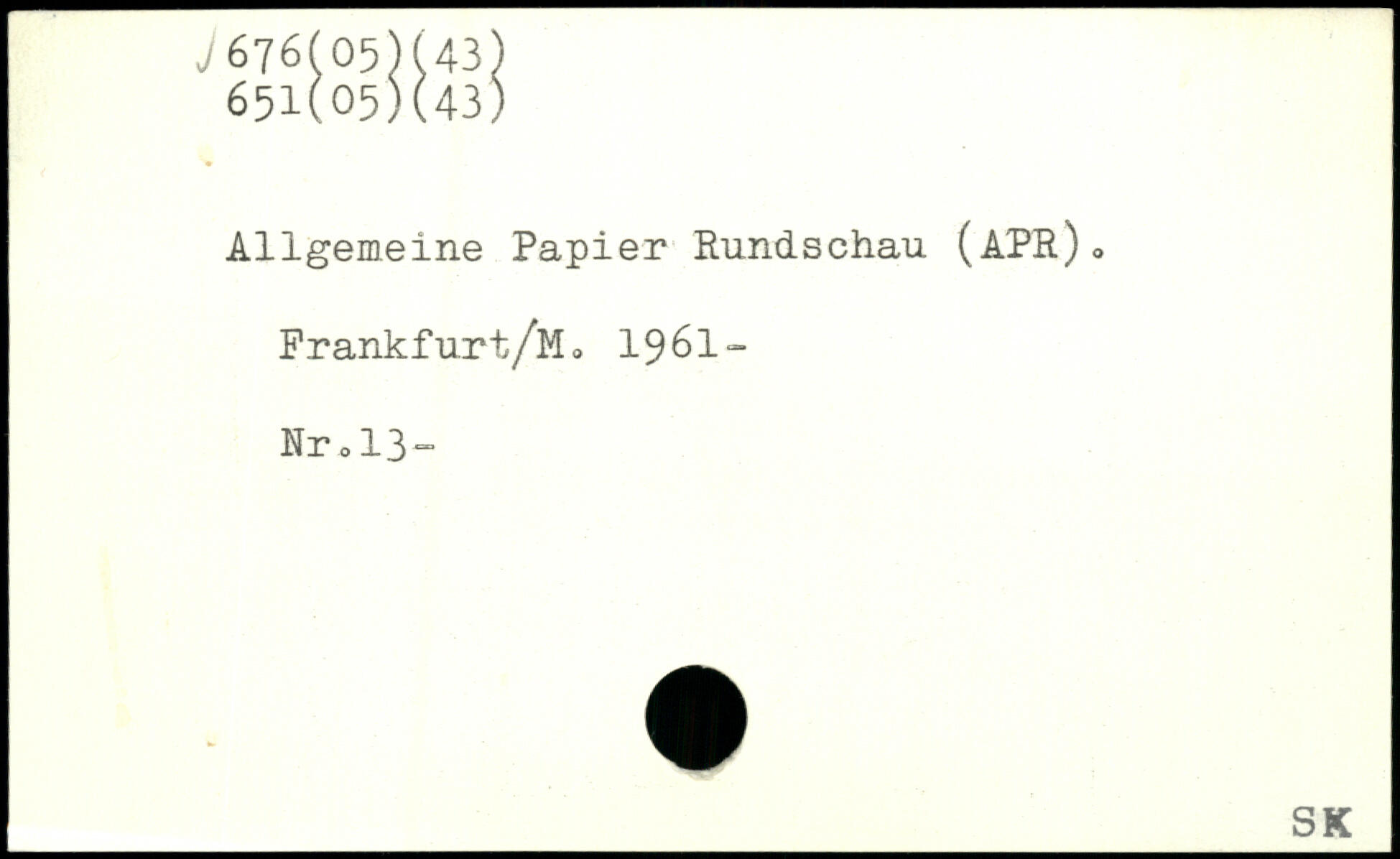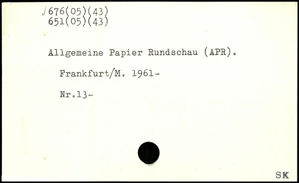 Allgemeine Papier Rundschau (APR), Frankfurt,/!!, 1961- Rro13-
