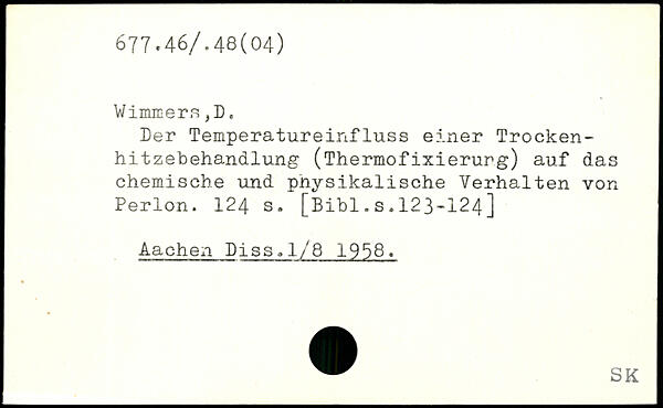 Wimmern,D e Der Temperatureinfluss einer Trockenhitzebehandlung (Thermofixierung) auf das chemische und physikalische Verhalten von Perlon.