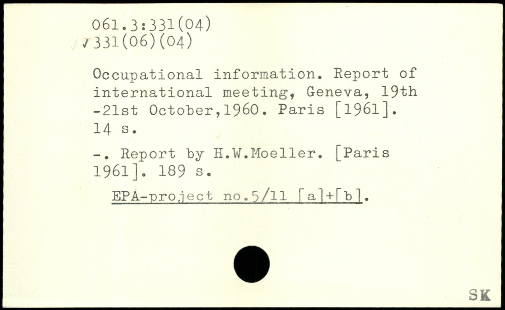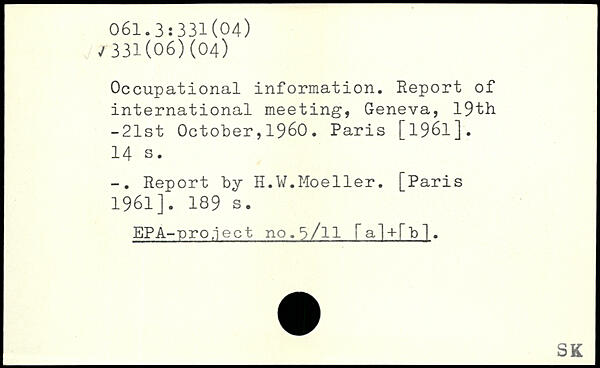 Occupational information. Report of international meeting, Geneva, 19th -21st October,1960.
