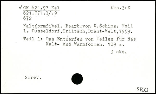 Kaltformfibel. Bearb.von K.Schimz. Teil 1.