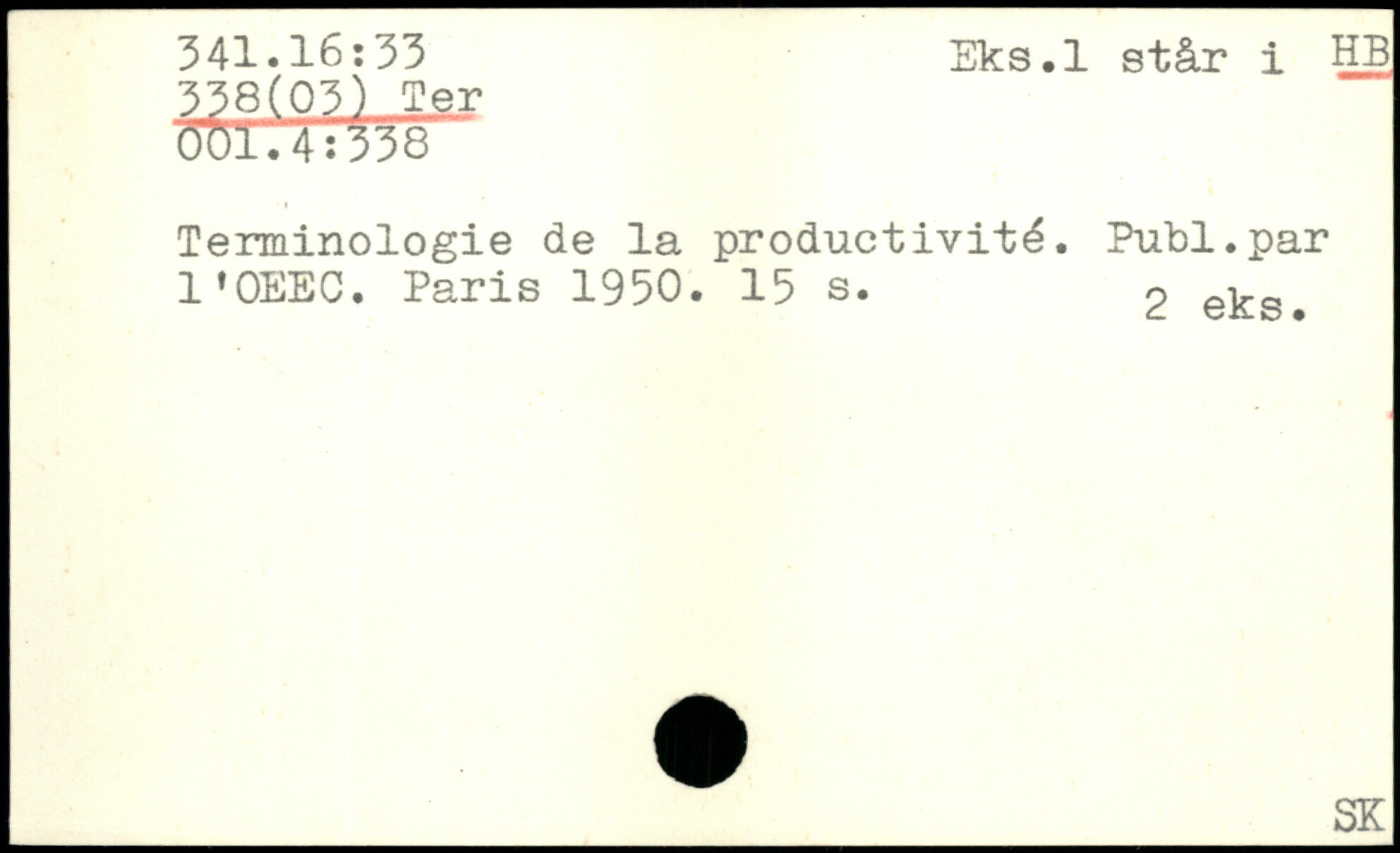 Terminologie de la productivité. Publ.par l'QEEC.