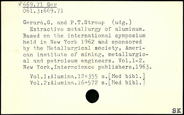 Extractive metallurgy of aluminum. Based on the international symposium held in