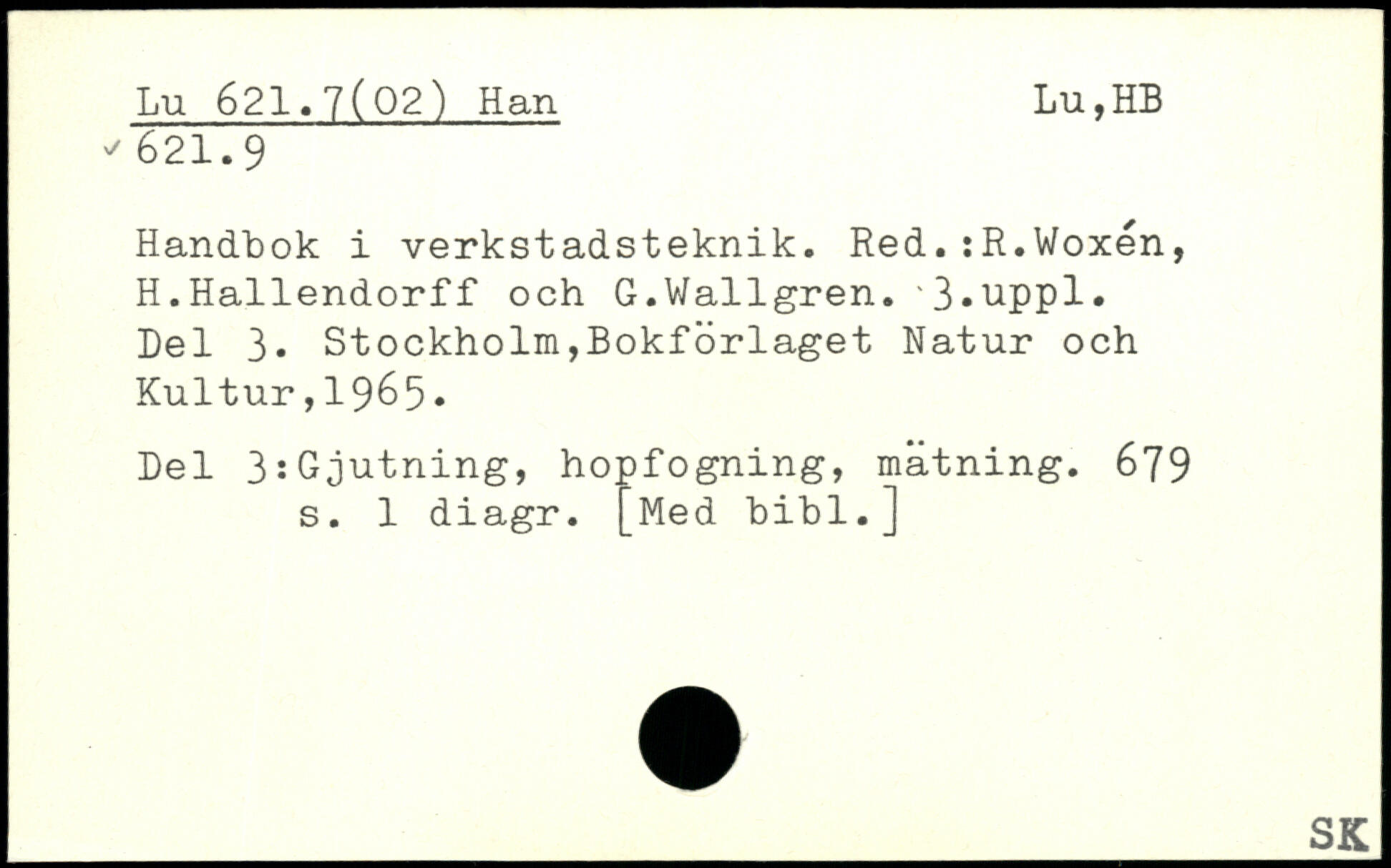 Handbok i verkstadsteknik. Red.:R.Woxén, H.Hallendorff och G.Wallgren. 3,uppl. Del 3-