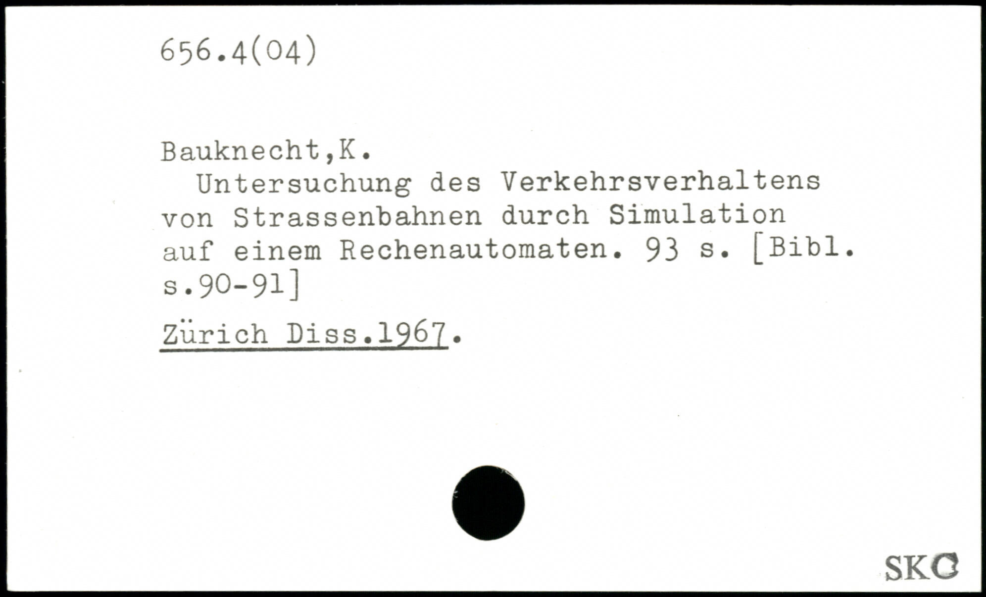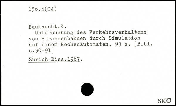 Untersuchung des Verkehrsverhaltens von Strass ent) ahnen durch Simulation auf einem Rechenautomaten.