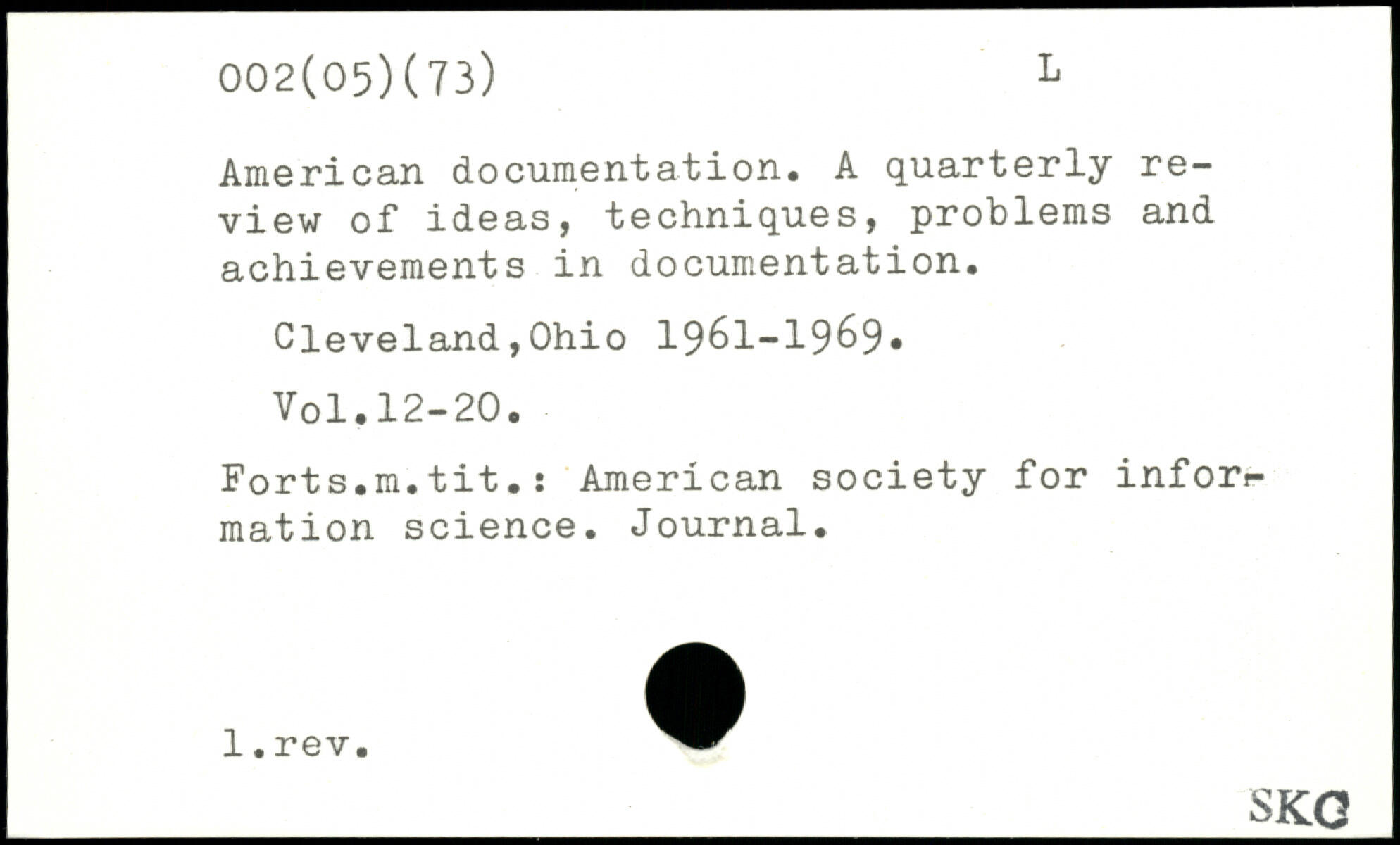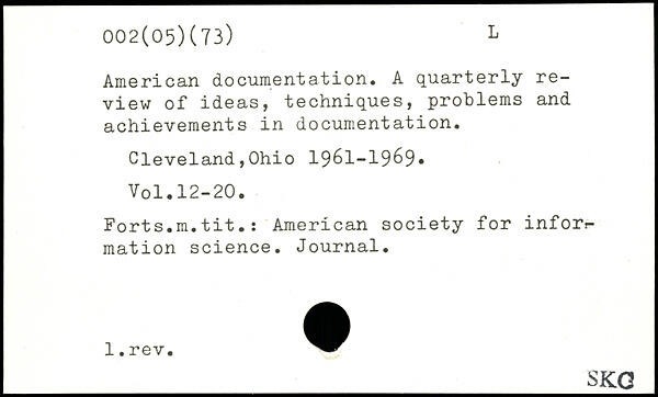 American documentation. A quarterly review of ideas, techniques, problems and achievements in documentation.