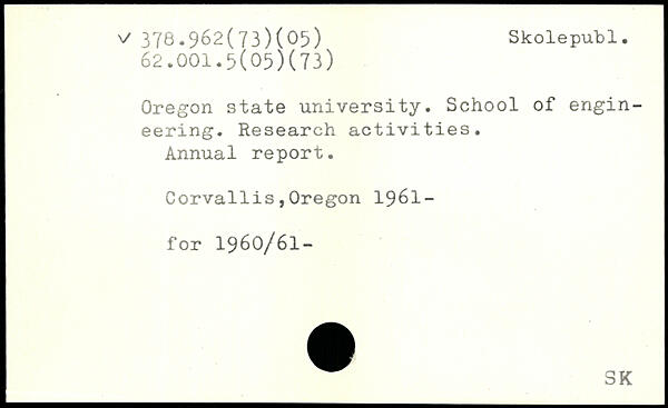 Oregon state university. School of engineering. Research activities. Annual report. Corvallis,Oregon 1961- for 1960/6I-