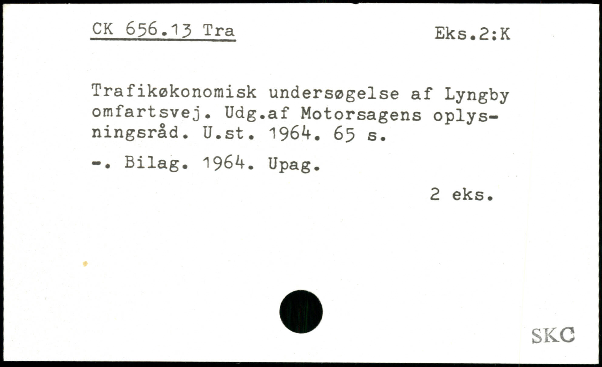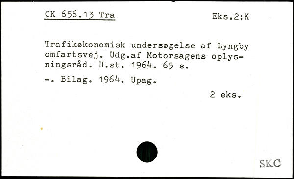 Trafikøkonomisk undersøgelse af Lyngby omfartsvej. Udg.af Motorsagens oplysningsråd. U.st. 1964.