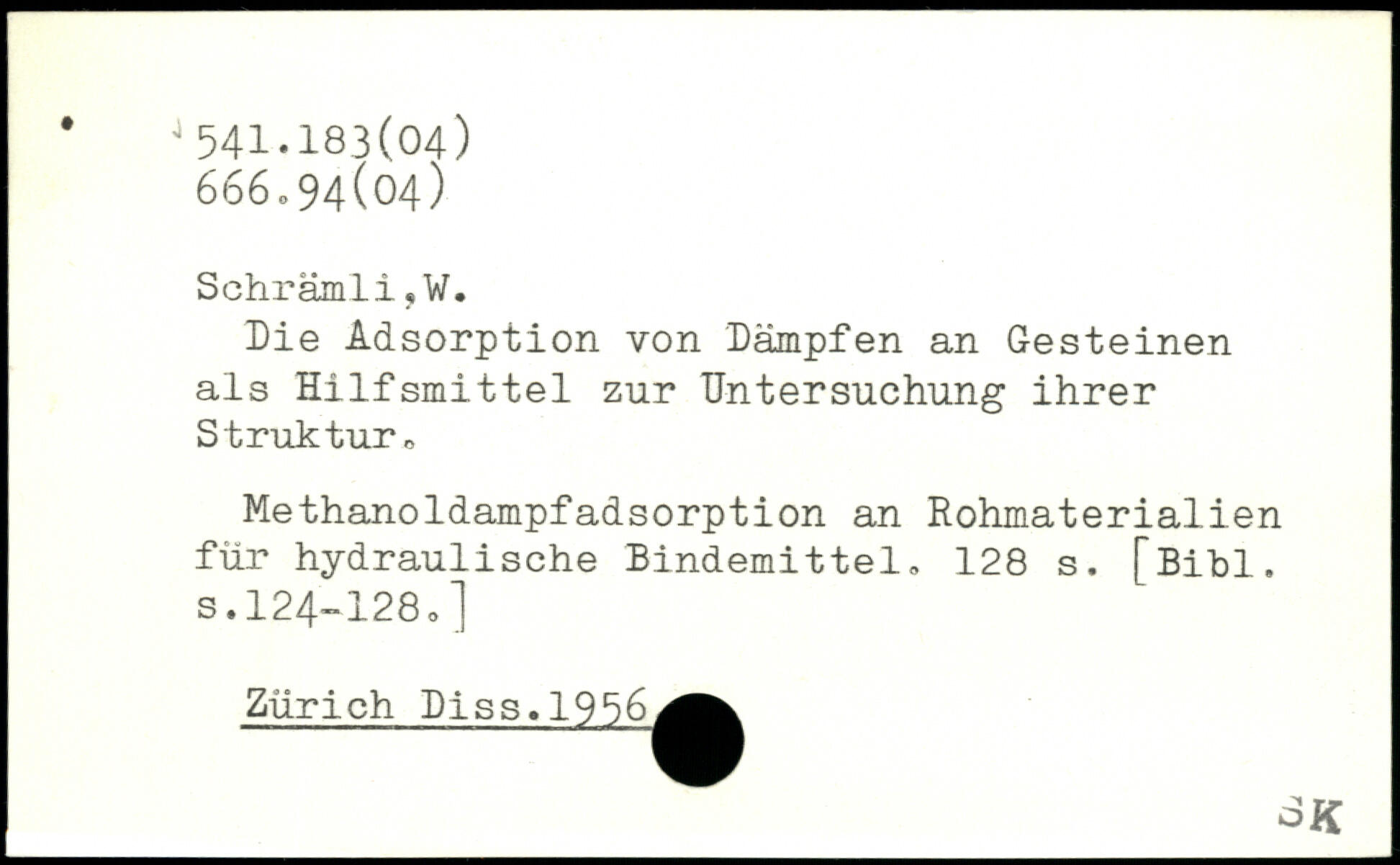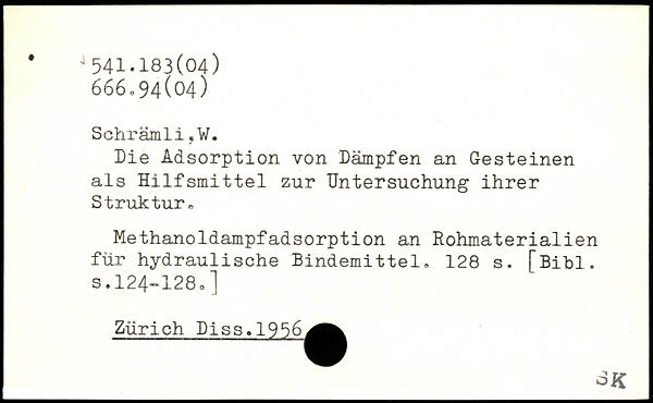 Die Adsorption von Dämpfen an Gesteinen als Hilfsmittel zur Untersuchung ihrer Struktur,, Methanoldampfadsorption an Rohmaterialien für hydraulische Bindemittel