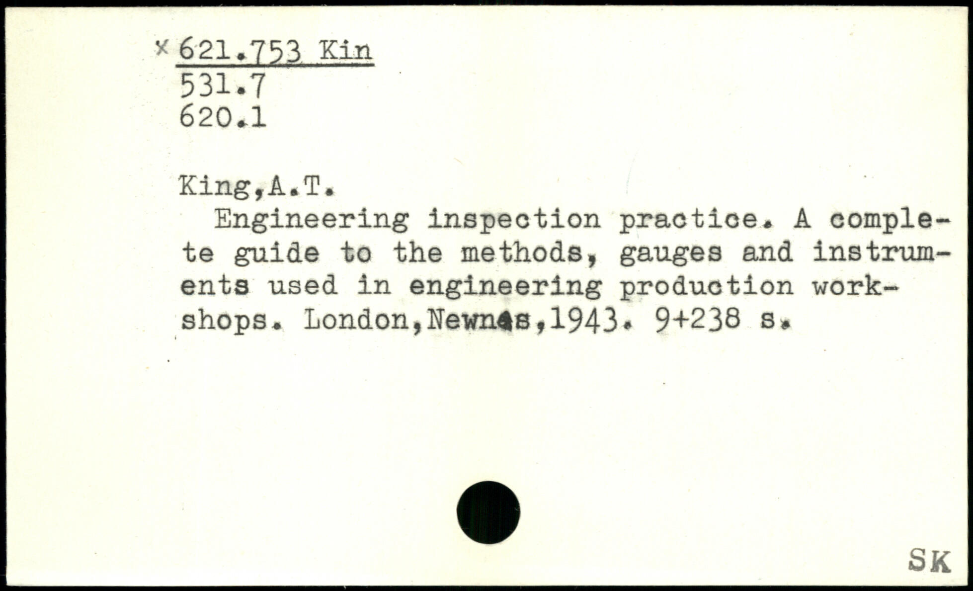 Engineering inspection practice. A complete guide to the methods, gauges and instruments used in engineering production workshops. London,Wewn^s,1943.