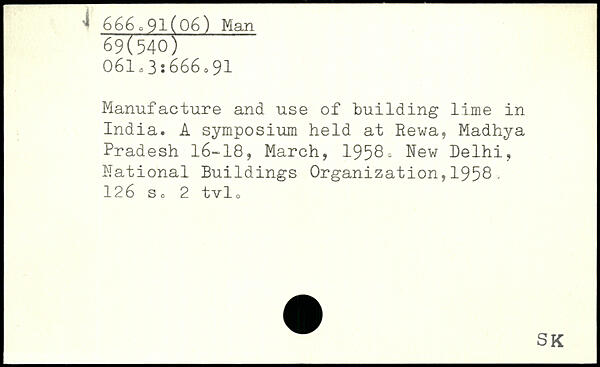 UDK: 666.91(06) Man, 69(540), 3:666.91