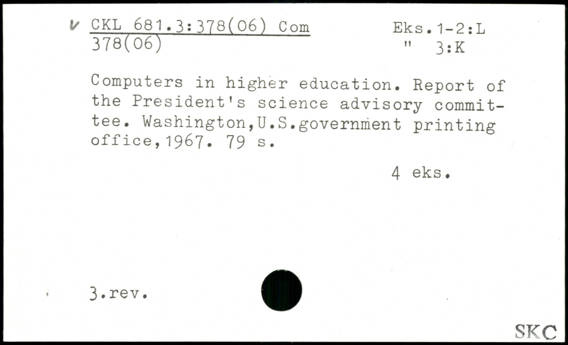 Computers in higher education. Report of the President's science advisory committee. Washington,U.S.government printing office,1967.