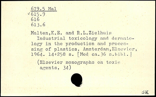 Industrial toxicology and dermatology in the production and processing of plastics. Amsterdam,Elsevier, ; 1964.