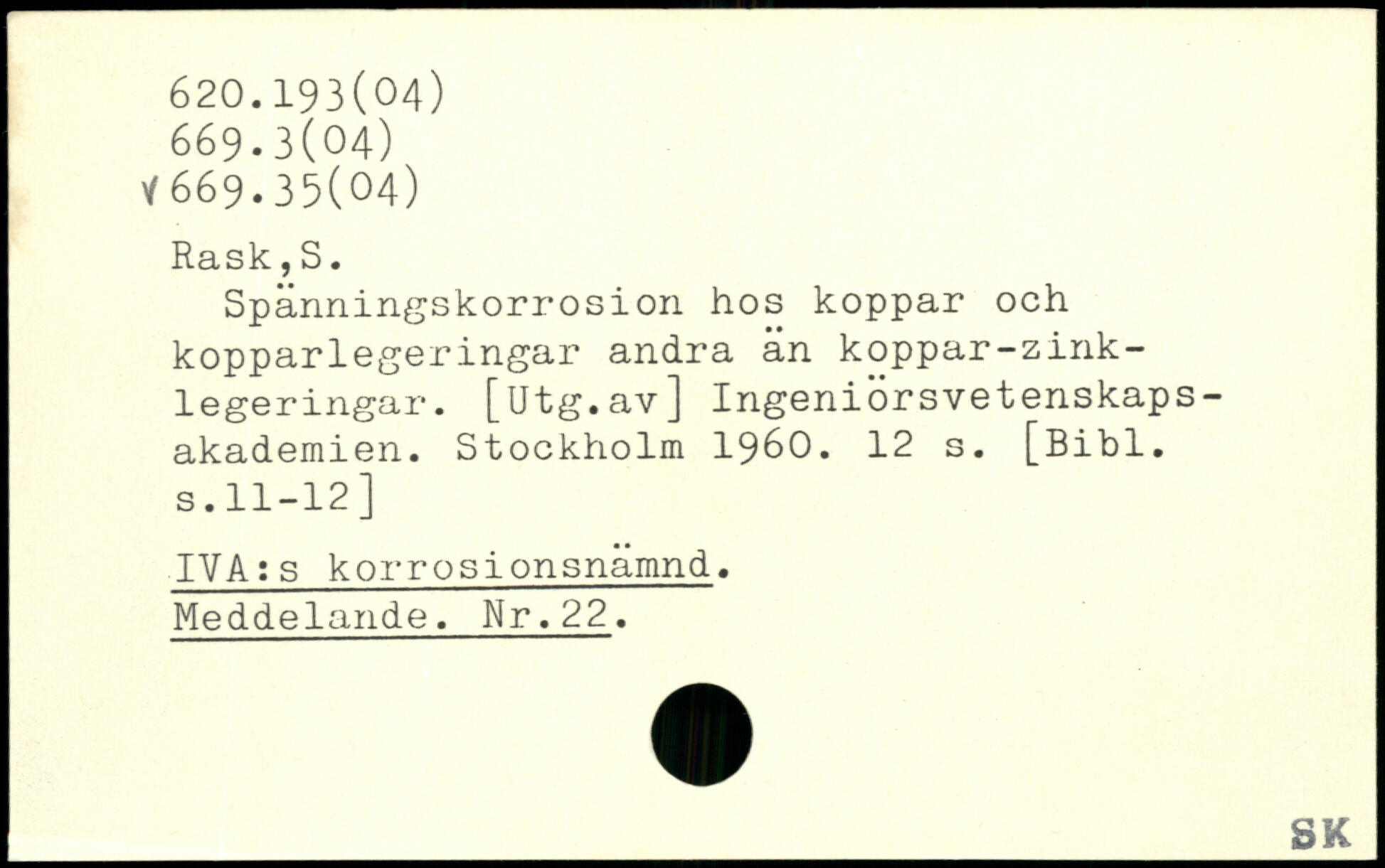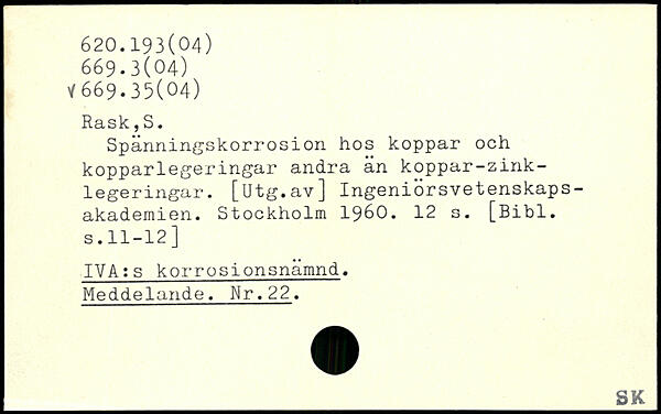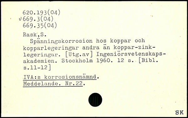 Spänningskorrosion hos koppar och kopparlegeringar andra än koppar-zink-legeringar. [ötg.av] Ingeniorsvetenskaps-akademien.